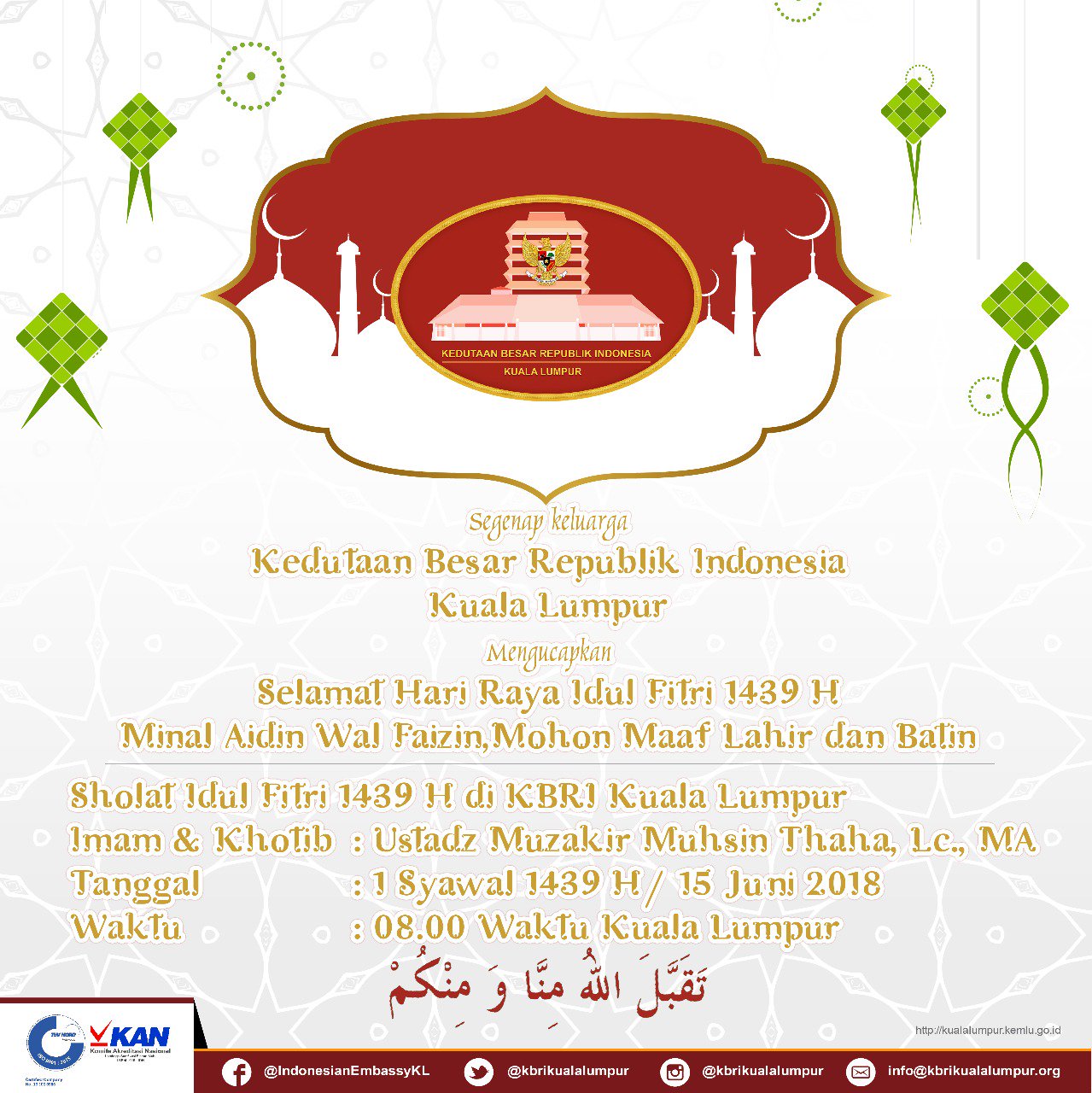 Indonesian Embassy Kuala Lumpur On Twitter Kbri Kuala Lumpur Akan Menyelenggarakan Sholat Idul Fitri Yang Akan Diselenggarakan Pada Hari Tanggal 1 Syawal 1439 H 15 Juni 2018 Jam 08 00 Waktu